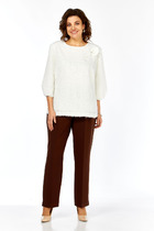 Стильный лаконичный брючный костюм. Жакет с застежкой на одну пуговицу. Жакет полуприлегающего силуэта, с V-образным вырезом горловины. По переду и по спинки имеются вытачки и рельефы, которые обеспечивают отличную посадку изделия по фигуре. Рукава втачные, длиной 3/4. Брюки классические на поясе, укороченые, с карманами по переду. Отличный вариант как для деловых встреч, так и для торжественных мероприятий.