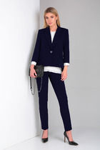 Длина жакета по спинке около 68,5 в размерах 40-46 и около 71,5 см в размерах 48-52, длина рукавов около 63 см. Длина брюк по боковому шву с поясом около 114 см в размерах 40-46 и около 115,5 см в размерах 48-52. Длина по внутреннему шву около 83 см