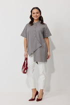 Детали: жакет полуприлегающего силуэта, рельефы, пиджачный воротник, застежка на две петли и пуговицы, функциональные карманы, жакет на подкладке. Жакет также можно зашнуровать по бокам. Брюки с притачным поясом со шлевками, складки у пояса, застежка на молнию и пуговицу, боковые карманы. Задние части брюк с вытачками и имитацией карманов.