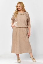 Длина жакета по спинке около 69 см в размерах 40-46 и около 72 см в размерах 48-52, длина рукавов около 62 см. Длина брюк по боковому шву с поясом около 113 см в размерах 40-46 и около 114,5 см в размерах 48-52, длина по внутреннему шву около 82 см.