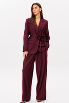 Детали: полуприлегающий силуэт, цельнокроеный воротник-стойка, рельефные швы переда и спинки, функциональные карманы, застежка на петли и пуговицы, жилет на подкладке. Брюки с притачным поясом со шлевками, передние половины с небольшими застроченными мягкими складками и заутюженными стрелками, застежка на молнию и пуговицу, боковые карманы. Задние части брюк с вытачками и заутюженными стрелками. Пояс брюк прямой, без резинки.
