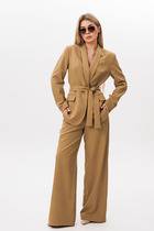 Детали: жакет прямого силуэта, расширенная линия плеч, пиджачный воротник, перед с функциональными карманами, однобортная застежка на петли и пуговицы, спинка со средним швом и шлицей, рукава втачные двухшовные, жакет на подкладке. Юбка на притачном поясе, застежка сзади на потайную молнию, юбка на подкладке.