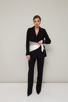 Длина жакета по спинке в размерах 40-46 около 71 см, в размерах 48-52 около 74 см, длина рукава около 61 см. Длина брюк по боковому шву с поясом около 112 см в размерах 40-46 и около 115,5 см в размерах 48-52. Длина по внутреннему шву около 82 см