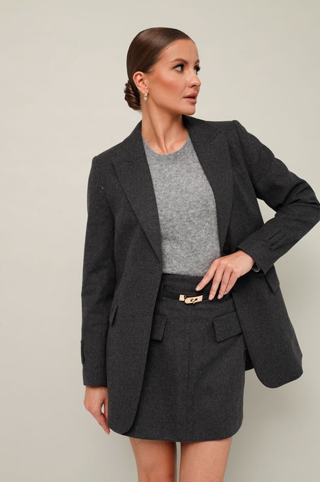 Стильный 2-предметный комплект, состоящий из жакета и юбки-шорт. Комплект выполнен из качественной костюмной ткани.