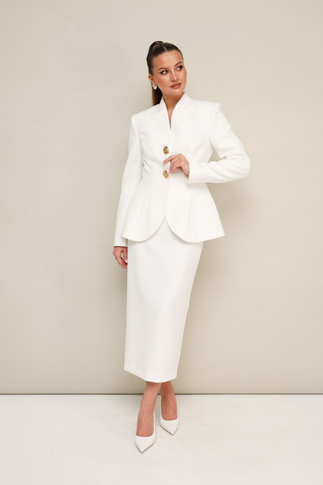 Стильный 2-х предметный комплект, состоящий из жакета и юбки, выполненный из костюмной ткани.
