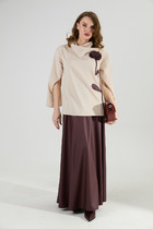 Юбка с кроем «по косой» в длине миди, пояс на обтачке, застежка в боковом шве на потайную тесьму молнию.