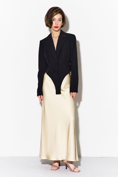 -жакет полуприлегающего силуэта, с фигурной линией низа, имитирующей боди