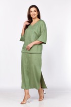 Брючный комплект из костюмной ткани на подкладке. Двубортный жакет выполнен в стиле оверсайз. Воротник-с отложными лацканами пиджачного типа, рукава – двухшовные. По переду- прорезные карманы с клапанами. Жакет имеет два ряда пуговиц, застегивается на две основные пуговицы, одну потайную, остальные пуговицы несут декоративный характер. Изюминка комплекта- декоративная булавка лимонного цвета. Брюки прямые со складкой, широким поясом-обтачкой, наклонными карманами. Застегиваются на молнию по переду и пуговицу. Съемная брошь в виде роскошной хризантемы ручной работы.