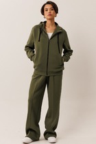 Комплект женский, состоящий из жакета и брюк, выполнен  из стрейчевой  костюмной ткани на подкладке. Жакет полуприталенного  силуэта с рельефами по переду и спинке, отрезной по линии талии, с баской. Карманы-эмитация. Воротник - пиджачного типа. Рукава - втачные, двухшовные.  Застежка на 2 пуговицы. Брошь ручной работы съемная. Брюки слегка заужены к низу, с поясом. Посадка-средняя. Застегиваются на молнию по переду и одну пуговицу.