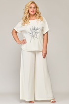 Роскошный комплект из стрейчевой костюмной ткани на подкладке, состоящий из жакета и юбки. Двубортный жакет с рельефами по переду, с завязками из ярких цветов ручной работы, выполненных из атласа, и потайной пуговицей, с помощью которых можно легко регулировать ширину. Воротник - апаш. Рукава - длинные, двухшовные. Юбка на подкладке, с рельефами, слегка зауженная к низу, с поясом. В среднем шве заднего полотнища юбки - застежка-молния и шлица. Длина жакета по спинке 67 см, длина рукава 63 см, длина юбки 67 см.