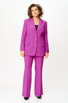 Классический брючный комплект из костюмной ткани на подкладке. Жакет приталенного силуэта с прорезными карманами с клапанами по переду. Воротник-английский, рукава - двухшовные. Кант по краю борта, клапанам   добавит  стиля и элегантности. Застегивается на две пуговицы.  Брюки прямые со складкой, широким поясом-обтачкой, наклонными карманами. Застегиваются на молнию по переду  и пуговицу.