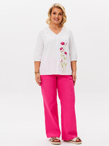 Брюки прямые свободного силуэта, с высокой посадкой на талии, с притачной манжетой по низу. Пояс притачной на резинке с кулисой.