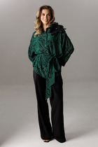 Рубашка свободного прямого кроя с втачным спущенным рукавом. По переду в верхней части накладные карманы. Застежка центральная на 8 петель и пуговиц. Воротник отложной на стойке. В боковых швах обработаны разрезы. Рукав длинный, по низу притачная манжета с застежкой на 2 петли и пуговицы.