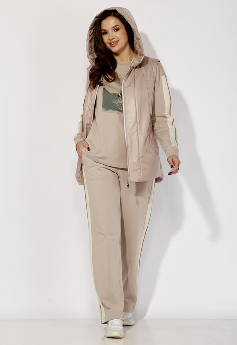 Комплект женский, 3х предметный, состоящий из свитшота, брюк и жилета.