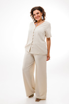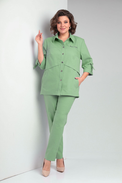 Стильный комплект-двойка, состоящий из рубашки и брюк. Модель свободного кроя из «Тиффани»- хлопкового джинса со стрейчем. Такой комплект идеально подходит для повседневной носки и сочетается с любой обувью и аксессуарами.