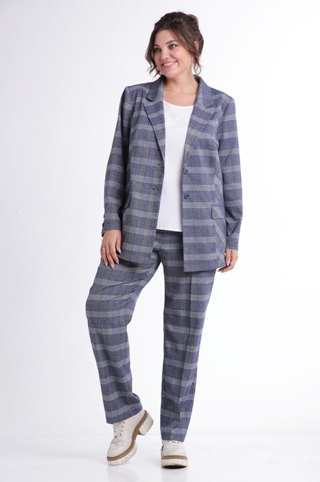 Женский комплект-двойка, состоящий из жакета и брюк в клетку — идеальное решение для деловых и повседневных образов. Удобный и стильный жакет отлично сочетается с базовым гардеробом. Прямой крой оптимально садится по фигуре вне зависимости от комплекции. Жакет с центральной бортовой застёжкой на две петли и пуговицы, перед жакета на подкладке. На переде обработаны рельефные швы, внутренние карманы с клапанами. Спинка со средним швом. Рукав втачной, двухшовный, длинный, с декоративной шлицей на две петли и пуговицы. Горловина обработана английским воротником. Брюки прямые, на притачном поясе с пуговицей и с резинками в районе боковых швов. На передних половинках обработаны функциональные карманы. Фурнитура может отличаться от представленной на фото.
