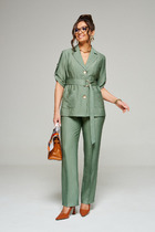 Жакет свободного покроя с естественной линией плеча на подкладке. Спинка со средним швом. Перед с нагрудными вытачками и настроечными листочками. По переду обработана отрезная планка плавно переходящая в борт и горловину. Вырез горловина V-образной формы. Борта жакета закруглённые. Застежка центрально-бортовая на петли-пуговицы. Рукав двухшовный длинный с отрезной манжетой и настроченной планкой.