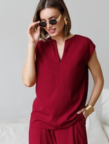 Брюки свободные расширенного силуэта. По бокам выполнены лампасы из полотна с пайетками. Пояс притачной на резинке. В боковых швах карманы.