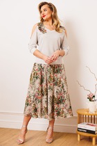 Костюм женский топ и шорты. Топ расклешенного силуэта на бретелях-лямках, завязывающихся на шее. Спина открытая, обработанная при помощи резинки. На полочке изделия вытачки. Низ изделия подгибка.