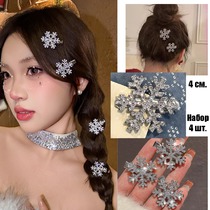 Комплект заколок СНЕЖИНКИ сияющие со стразами 4 шт. Большие 4 см.