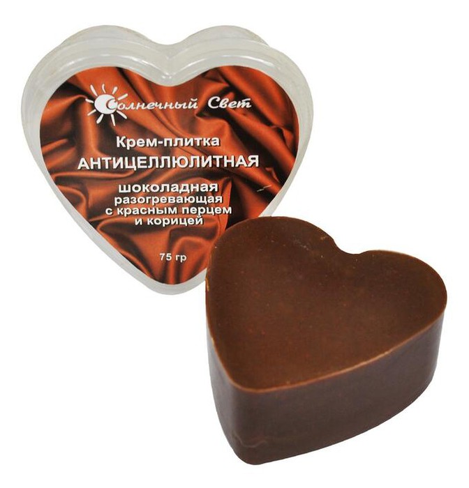 Способы применения:— как масло для ванны: в наполненную ванну с теплой водой опустите крем-плитку. Постепенно подтаивая, она будет растворять полезные масла, наполнять воздух изысканным ароматом, создавая в воде молочную взвесь, нежно ухаживаю-щую за кожей. Одной плитки хватит на 2–4 процедуры. — как концентрированный крем-бальзам для ухода за кожей во время приема ванны или под душем ( крем-плиткой можно пользоваться в воде ) – Вы ощутите мягкость, гладкость и аромат кожи после такой процедуры! — как концентрированный крем-бальзам для тела после ванны или душа: не вытираясь полотенцем, нанести на мокрое тело небольшое количество вещества крем-плитки. Разотрите массирующими движениями до полного впитывания. Шоколадная Крем-плитка АНТИЦЕЛЛЮЛИТНАЯ разогревающая