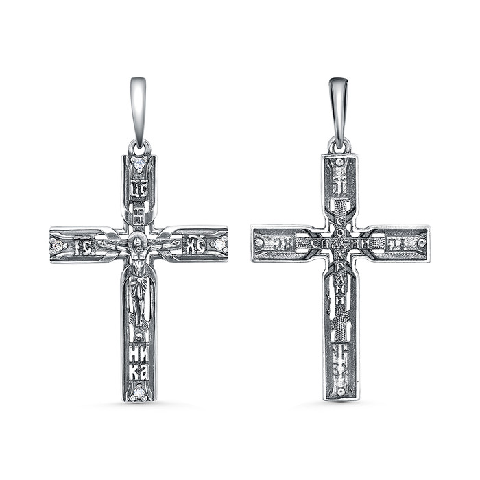 Совместные покупки Каменск-Уральский Ювелирные украшения и бижутерия Подвески — Крест из чернёного серебра с фианитами - 4,4 см 925 пробы Кр-151ч