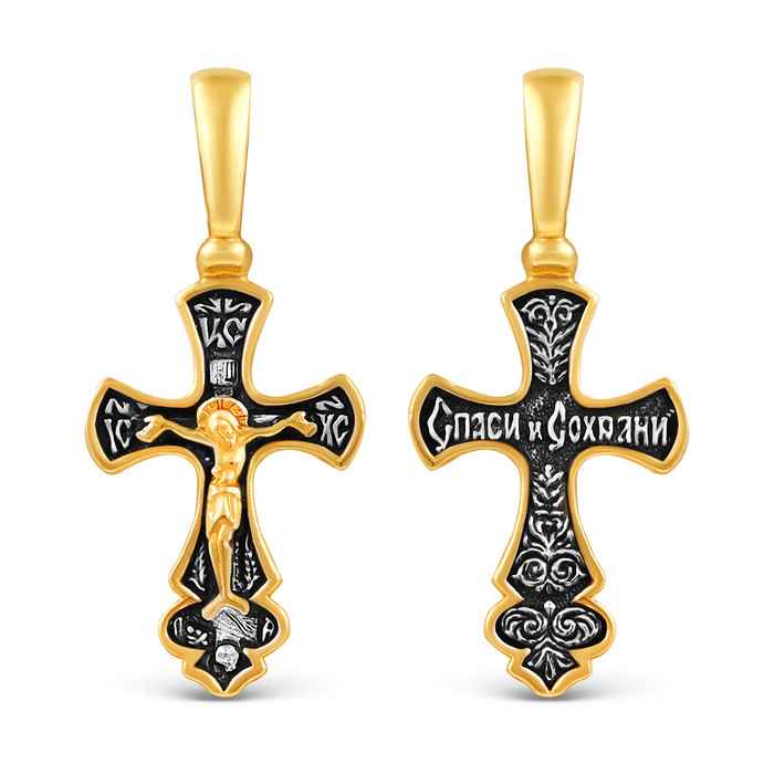Совместные покупки Каменск-Уральский Ювелирные украшения и бижутерия Подвески — Крест из чернёного серебра с золочением - 3,1 см 925 пробы К3-340чз