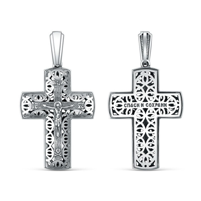 Крест из чернёного серебра - Спаси и сохрани ПР-008ч