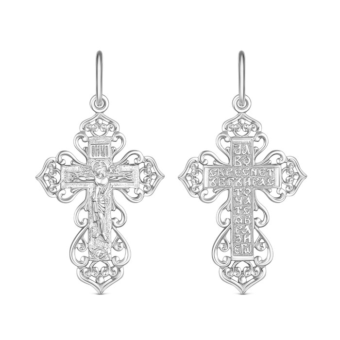 Совместные покупки Каменск-Уральский Ювелирные украшения и бижутерия Подвески — Крест из серебра родированный - Да воскреснет Бог 3,9 см 925 пробы К3-493р