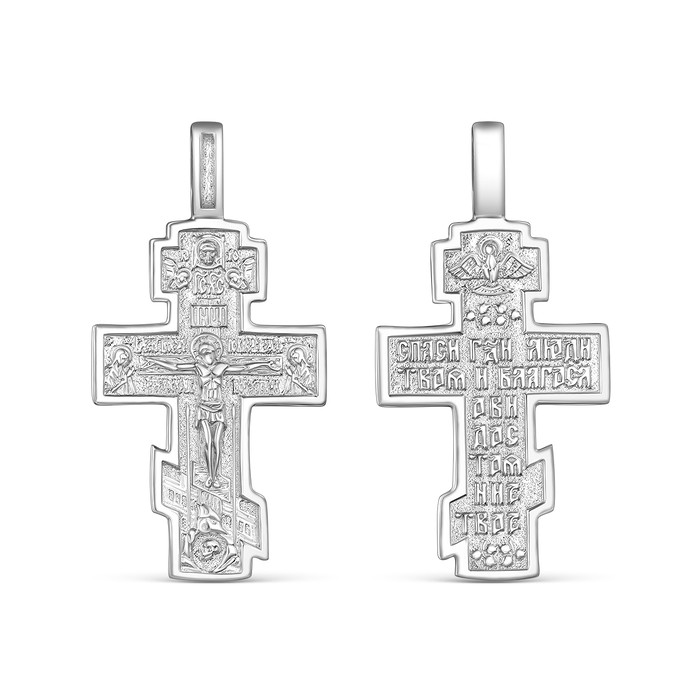 Совместные покупки Каменск-Уральский Ювелирные украшения и бижутерия Подвески — Крест из серебра родированный - Тропарь Креста 4,5 см 925 пробы К3-522р