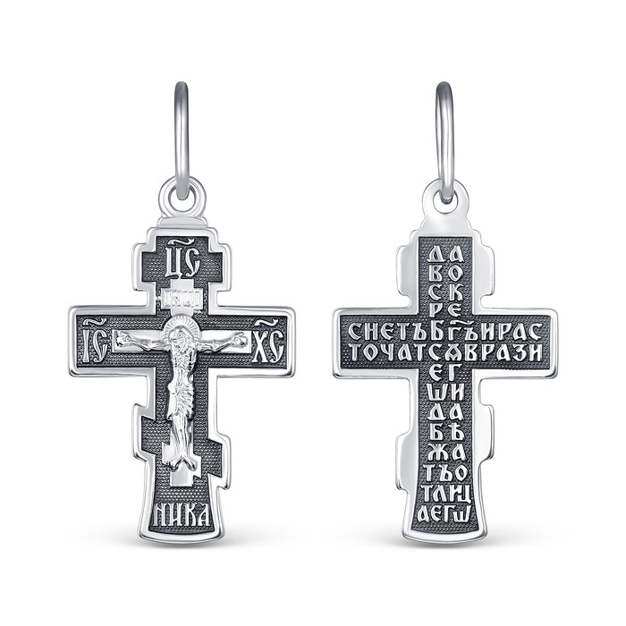 Крест православный из чернёного серебра - Да воскреснет бог 2,9 см 925 пробы 1-2