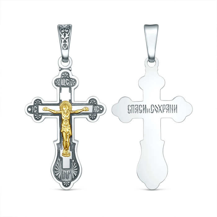 Совместные покупки Каменск-Уральский Ювелирные украшения и бижутерия Подвески — Крест православный из чернёного серебра с золочением - Спаси и сохрани, 3,7 см 0