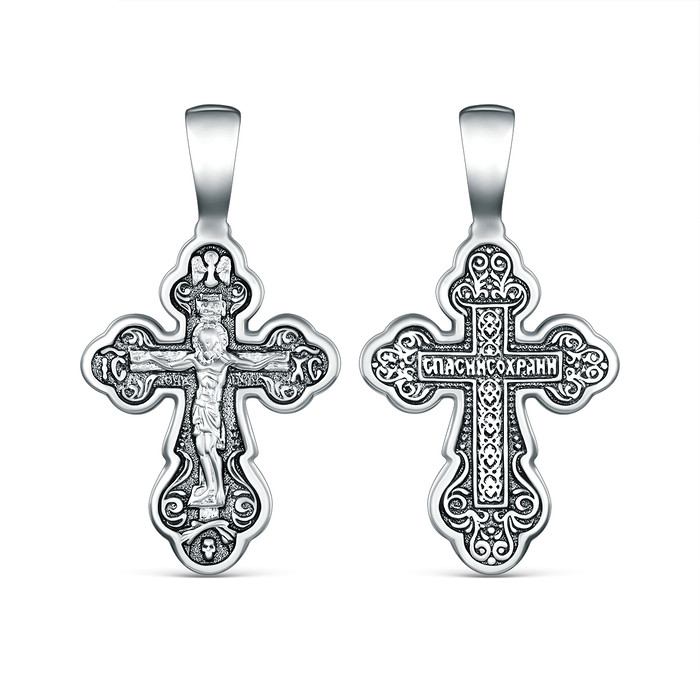 Совместные покупки Каменск-Уральский Ювелирные украшения и бижутерия Подвески — Крест православный из чернёного серебра - Спаси и сохрани 3,2 см 925 пробы 3-553