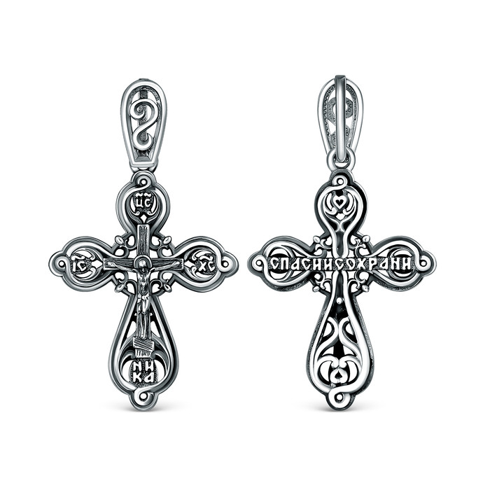 Совместные покупки Каменск-Уральский Ювелирные украшения и бижутерия Подвески — Крест православный из чернёного серебра - Спаси и сохрани 3,2 см ПР-013ч