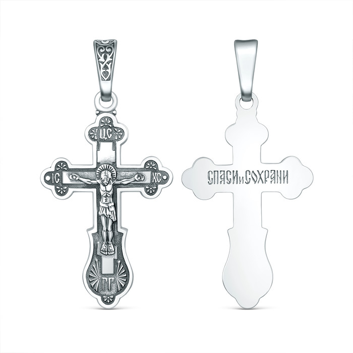 Совместные покупки Каменск-Уральский Ювелирные украшения и бижутерия Подвески — Крест православный из чернёного серебра - Спаси и сохрани 3,7 см 925 пробы 00-00