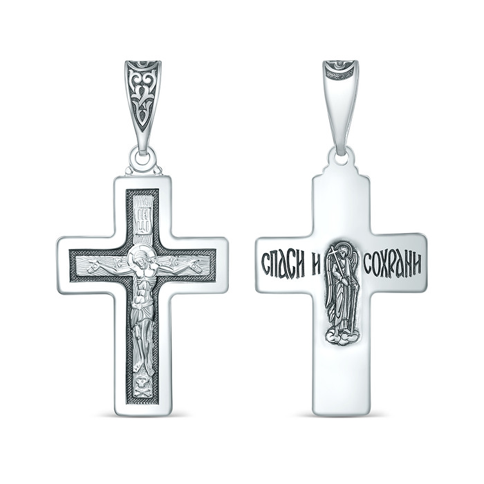 Крест православный из чернёного серебра - Спаси и сохрани, 5,9 см 00-0016-2