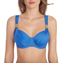 Купальник слитный со сборкой по линии груди, рельефными линиями, застежкой на спинке и съемными чашечками.