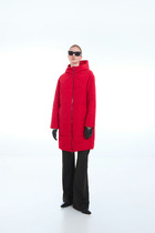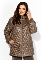 Куртка полуприлегающего силуэта на молнии, закрытой декоративной планкой на кнопках. Оригинальная отстрочка, декоративная пряжка, карманы на молнии. Капюшон отстегивается. Утеплитель холкон (см.описание) (см.описание), плотность 150. Длина изделия по спинке 66 см, длина рукава 64 см.