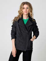 Легкая весенняя куртка прямого силуэта с ассиметричной застежкой на двухзамковую молнию и втачными рукавами подойдет  для женщин и девушек любого возраста. Отложной воротник с лацканами - классический вариант "косухи".  Удобно расположенные карманы застегиваются на молнию.  Плащевая ткань имеет водоотталкивающую пропитку,  которая выдержит небольшой дождь и легкий ветер. Хорошо зарекомендовавший себя утеплитель "Холлофайбер", плотностью 70гр/м, защитит от весенней прохлады.   Подкладка в изделии - из ткани в мелкую полоску.  Эта стильная куртка-косуха выручит Вас весной и прохладным летом, ее можно сочетать не только с джинсами и классическими брюками, но и с платьями и юбками.