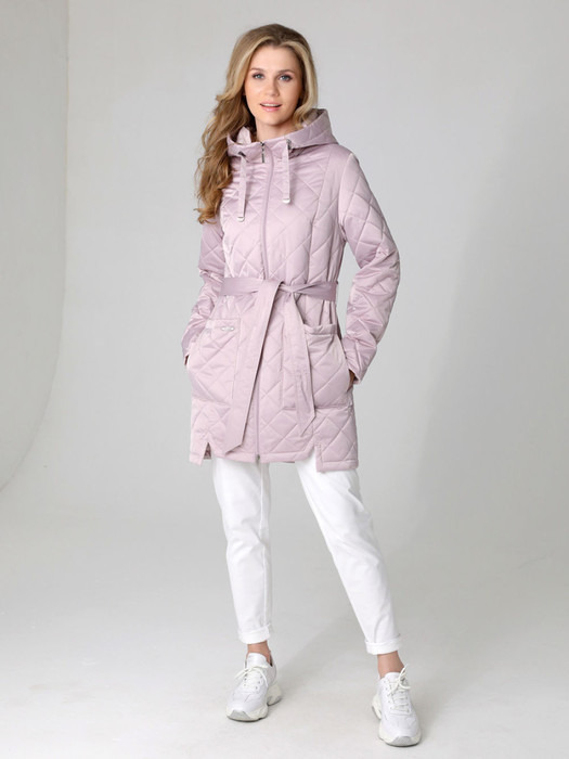 Демисезонная удлиненная куртка с втачными рукавами  подойдет для женщин и девушек любого возраста.  Застежка на двухзамковую молнию позволяет  легко расстегнуть куртку как сверху, так и снизу.   Воротник - стойка, переходящая в капюшон. Удобно расположенные накладные карманы имеют два функциональных входа: верхний и боковой, который фиксируется кнопкой. Есть внутренний кармашек на молнии. Линию талии, при желании, можно подчеркнуть поясом. Эта легкая стильная куртка с разноуровневой линией низа  выручит Вас на прогулке, на отдыхе и в городе.  Стеганная плащевая ткань имеет водоотталкивающую пропитку, которая выдержит небольшой дождь и легкий ветер. Хорошо зарекомендовавший себя утеплитель Холлофайбер плотностью 100 гр/м защитит от весенней прохлады. Подкладка в изделии - в мелкую полоску.  Фантазируйте с обувью и аксессуарами, и эта лаконичная по стилю  куртка станет незаменимой частью Вашего гардероба.