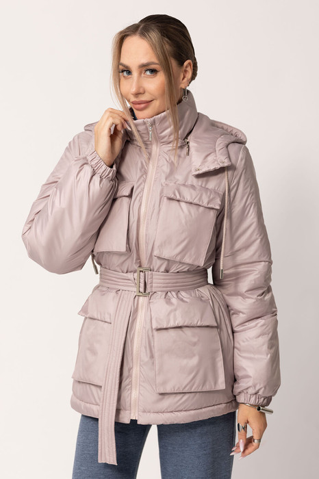 Куртка прямого силуэта, утепленная, с центральной застежкой на молнию, втачным воротником- стойкой, капюшоном, пристегивающимся на молнию. На полочках, на уровне груди и на уровне бедер расположены накладные карманы с клапанами. Рукав втачной, с отрезной манжетой, присборенной на резинку. Куртка со сьемным поясом.