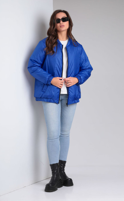 Куртка “бомбер” утепленная (микрофайбер 150гр/м2) на подкладке свободного кроя с воротником стойкой. Застежка центральная на молнию. Спинка с кокеткой. Рукав втачной, одно шовный, низ рукава с притачной манжетой на резинке. По переду прорезные карманы с листочкой. Низ куртки с притачной манжетой со сборкой на эластичную ленту. Рассчитано на температурный режим до -5 (указанная температура комфорта может зависеть от индивидуальной восприимчивости к холоду). На модели “бомбер” 46 размера (параметры модели ОГ-90см ОТ-71см ОБ-102см рост -173см)