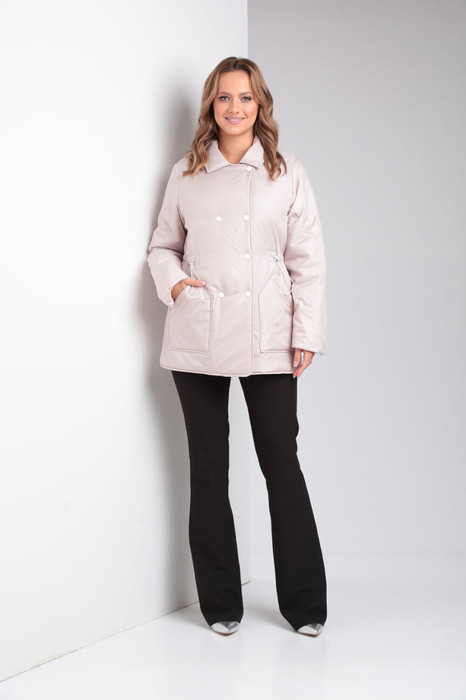 Куртка женская утепленная (микрофайбер 150гр/м2) на подкладке. Модель с центральной двубортной застежкой на кнопки, отложным воротником и лацканами. По переду – фигурные накладные карманы. Спинка цельная. Рукав длинный втачной. По линии талии идет кулиса со вставленной круглой эластичной резинкой и фиксаторами для стягивания. Рассчитано на температурный режим до -5 (указанная температура комфорта может зависеть от индивидуальной восприимчивости к холоду). На модели размер 46 (параметры модели ОГ-90, ОТ-70, ОБ-102 рост 170см)