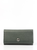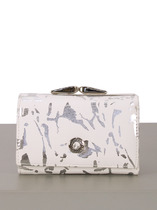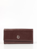 Кошелек женский выполнен из натуральной кожи. Детали: кошелек закрывается на магнитную кнопку, 2 отделения для купюр, 6 слот отделений для визиток или карт, 1 отделение с прозрачным окошком для карты или проездного, 2 кармана, 1 отделение на кнопке для монет. Фурнитура серебристого цвета. Упаковка: фирменная белая коробка.