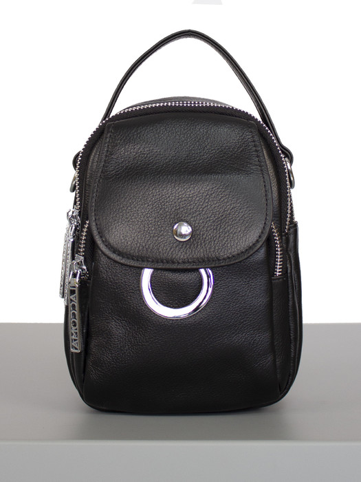 Рюкзак женский выполнен из натуральной кожи. Детали: 2 регулируемые ручки до 95см. 2 короткие ручки по 25см. Внутри изделия: 1 отделение на молнии, 1 карман на молнии, 1 евро карман на молнии, 1 карман открытый. Снаружи изделия: 1 карман на оборотной стороне на молнии, 1 кармана на молнии спереди изделия и 1 карман на скрытом магните. Брендированная подкладка из полиэстера. Металлическая брендированная фурнитура серебристого цвета. В комплекте фирменный пыльник.