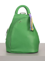 Рюкзак женский выполнен из экокожи. Детали: 2 регулируемые ручки по 102 см.  соединяющиеся в одну при помощи молнии, 2 маленькие ручки для держания в руке. Внутри изделия: 1 основное отделение на молнии, 2 открытых кармана, 1 карман для мобильного телефона, 1 карман на молнии. Снаружи изделия: 1 карман на молнии спереди, 1 карман на молнии на оборотной стороне. Брендированная подкладка из хлопка. Металлическая брендированная фурнитура серебристого цвета. В комплекте фирменный пыльник.