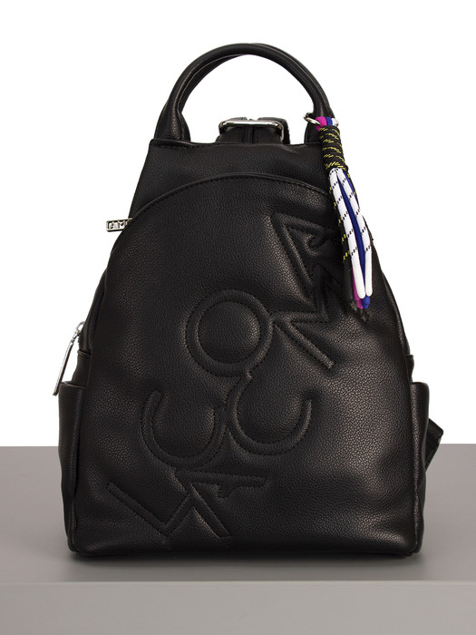 Рюкзак женский выполнен из экокожи. Детали: 2 регулируемые ручки по 102 см.  соединяющиеся в одну при помощи молнии, 2 маленькие ручки для держания в руке. Внутри изделия: 1 основное отделение на молнии, 2 открытых кармана, 1 карман для мобильного телефона, 1 карман на молнии. Снаружи изделия: 1 карман на молнии спереди, 1 карман на молнии на оборотной стороне. Брендированная подкладка из хлопка. Металлическая брендированная фурнитура серебристого цвета. В комплекте фирменный пыльник.