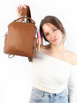 Женский рюкзак трансформер выполнен из мягкой эко кожи, фактура - натуральная кожа. Рюкзак подходит для работы, для деловых встреч, на выход, как повседневный рюкзачок для города, школьный ранец. Городской рюкзак LACCOMA  практичен, изготовлен в России, усиленная металлическая фурнитура серебристого цвета добавляет индивидуальность. Детали: 2 регулируемые ручки 102 см,трансформирующиеся в одну с помощью молнии, 2 маленькие ручки для держания в руке. Внутри изделия: 1 отделение на молнии, 2 открытых кармана, 1 карман для мобильного телефона, 2 кармана на молнии. Снаружи изделия: 1 карман на молнии спереди, 1 карман на молнии на оборотной стороне. Брендированная подкладка из хлопка. В комплекте фирменный пыльник. Модель представлена в цветах: черный, белый, бежевый, серый, сиреневый, розовый, темно - бежевый.  Купить рюкзак как подарок девушке, любимой, подруге на день рожденья, 8 марта, день святого валентина, новый год. Классический дизайн, популярный тренд сезона.