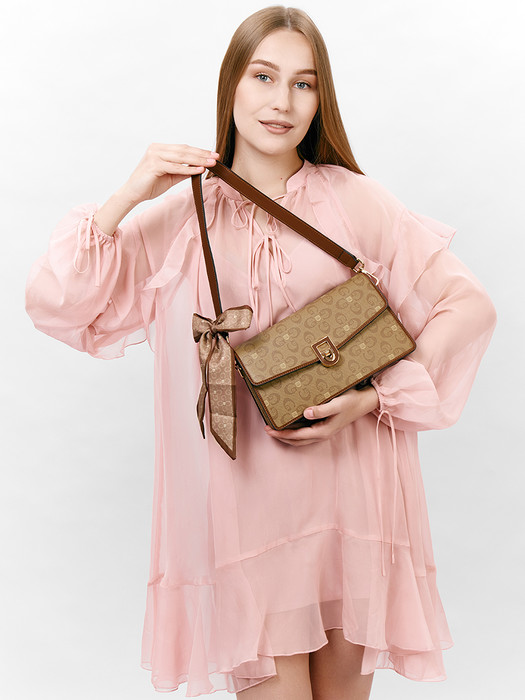 Сумка женская выполнена из экокожи. Детали: 1 съёмная регулируемая длинная регулируемая ручка 110-125см., 1 съемная короткая ручка 65см. Внутри изделия: клапан закрывается замок, внутри 1 отделение на молнии и 2 отделения открытых,1 карман на молнии, 1 карман открытый. Брендированная подкладка из хлопка. Металлическая брендированная фурнитура золотистого цвета. В комплекте фирменный пыльник.