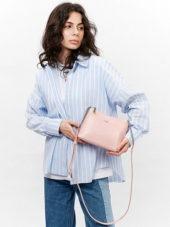 Сумка женская выполнена из экокожи. Детали: длинная регулируемая ручка c элементами цепочки до 135 см. Внутри изделия: 1 основное отделение на молнии, 1 открытый карман и 1 карман для мобильного телефона. Снаружи изделия: 1 карман на оборотной стороне на молнии. Брендированная подкладка из хлопка. Металлическая брендированная фурнитура серебристого цвета. В комплекте фирменный пыльник.
